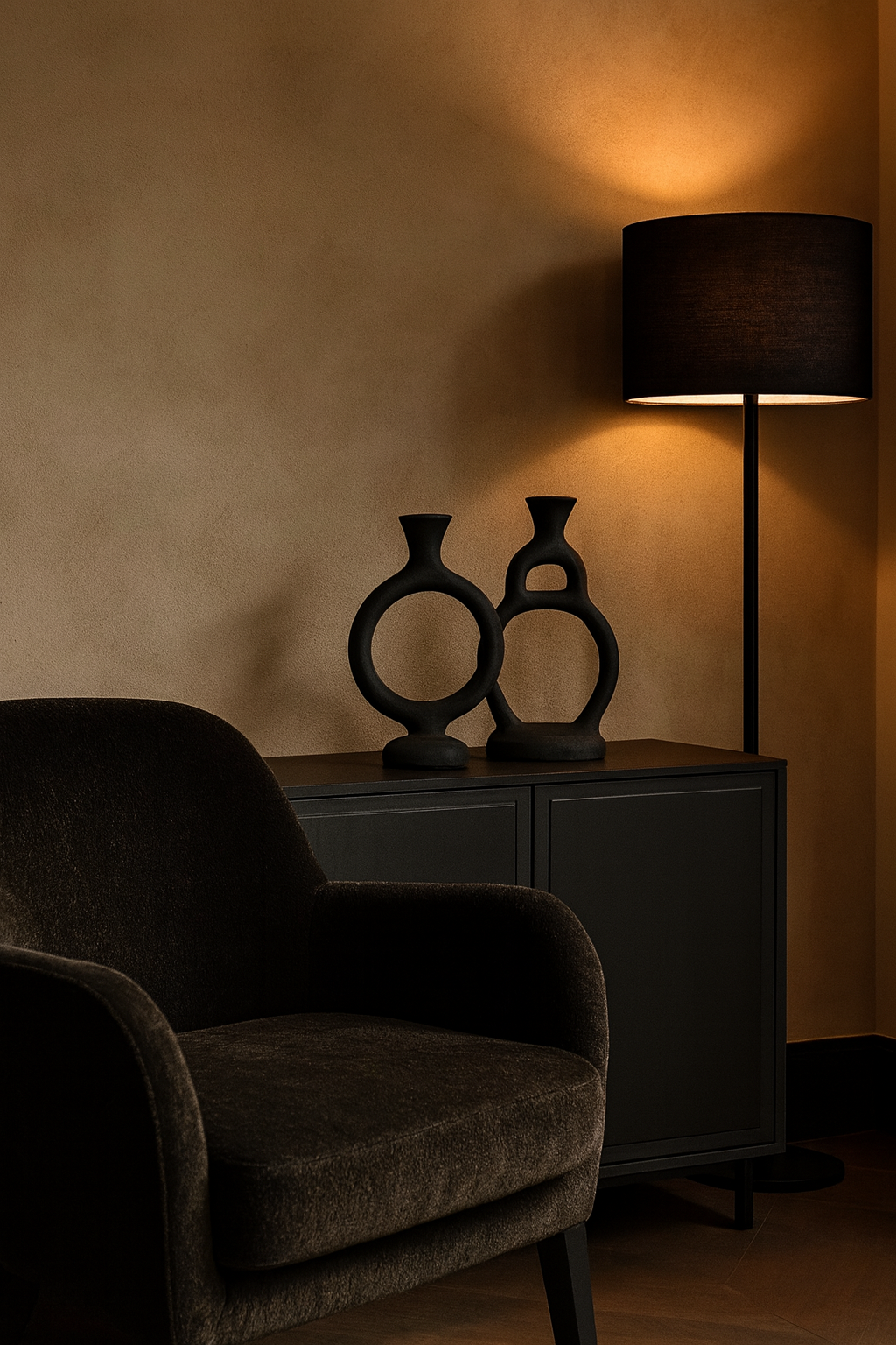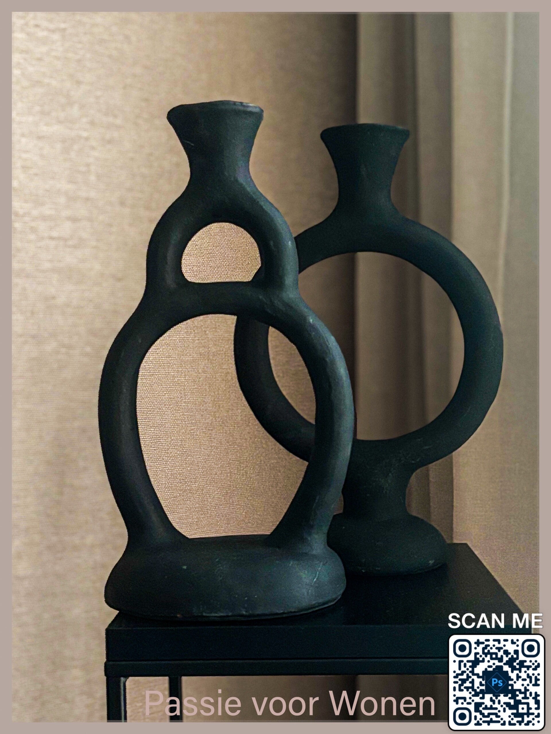 De pole to pole kandelaars stralen elegantie uit door hun organische vormen en matzwarte afwerking. deze set van twee voegt direct een luxe, moderne sfeer toe aan je interieur. Mooi als duo op een dressoir, bijzzettafel of open kast - subtiel maar met karakter.