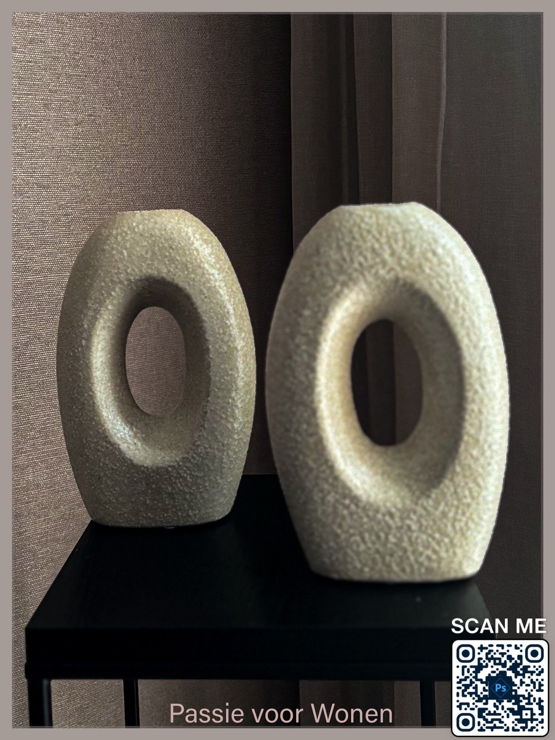 Ontdek de perfecte balans tuusen kunt en interieur met de vazen Luna en Luna soft. beide varianten hebben een unieke organische, ovale vorm en zachte zandstructuur die zorgt voor een rustige, luxe uitstraling.