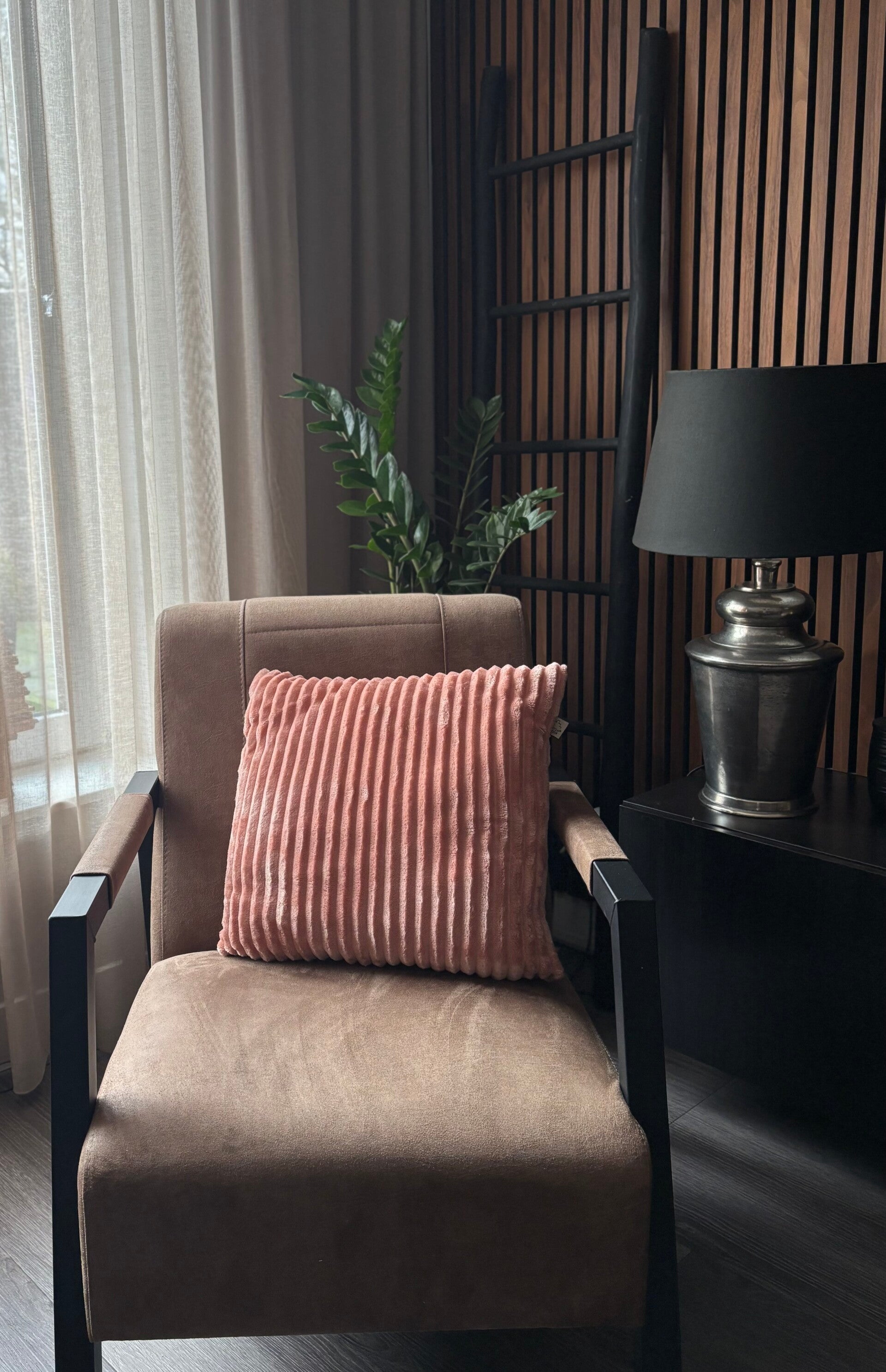 Sierkussen Matt van Dutch Decor In formaat 45 x 45 cm heeft een speelse structuur en warme kleur die direct sfeer toevoegt aan je interieur.