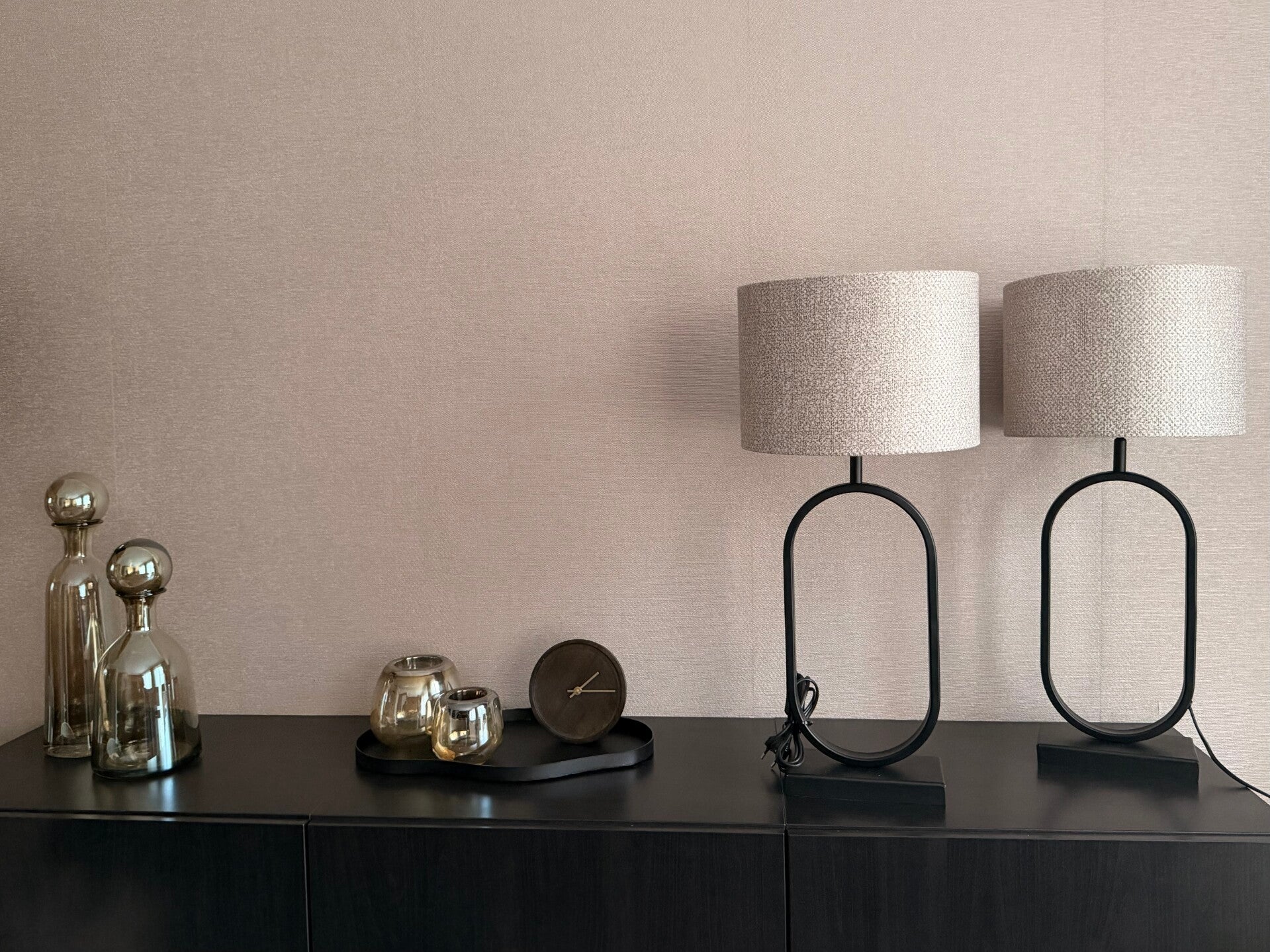 De bijpassende kap is LAMPENKAP BRANDY BEIGE. De zachte beigetint vormt een warm contrast met de mat zwarte lampvoet en zorgt voor een sfeervol, diffuus licht.
