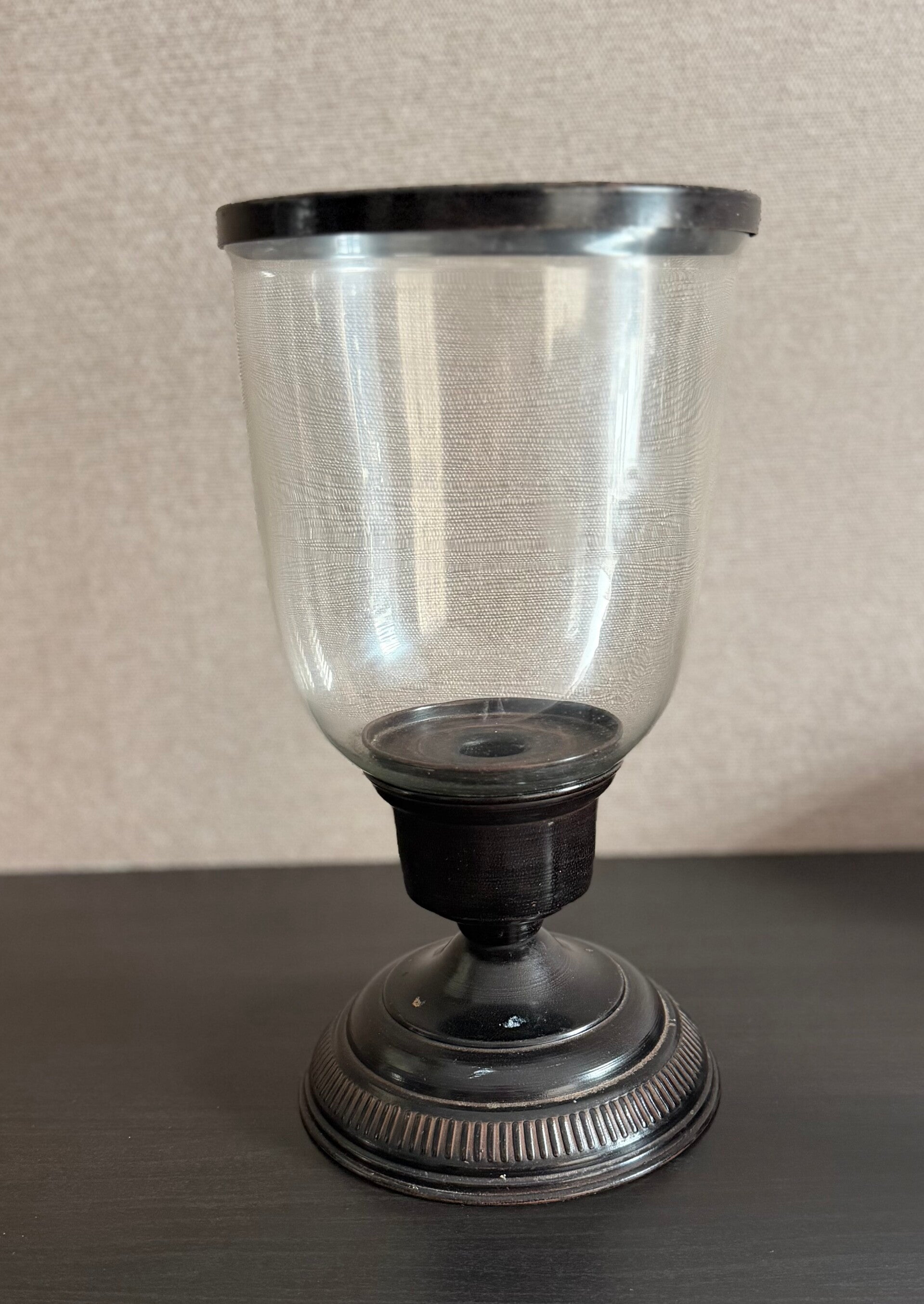Een sfeervol windlicht met een elegante zwarte voet en een glazen kap. Perfect voor een waxinelichtje en ideaal om een warm en gezellig hoekje in huis te creëren. Mooi op een tafel, dienblad of dressoir en makkelijk te combineren met andere woonaccessoires.