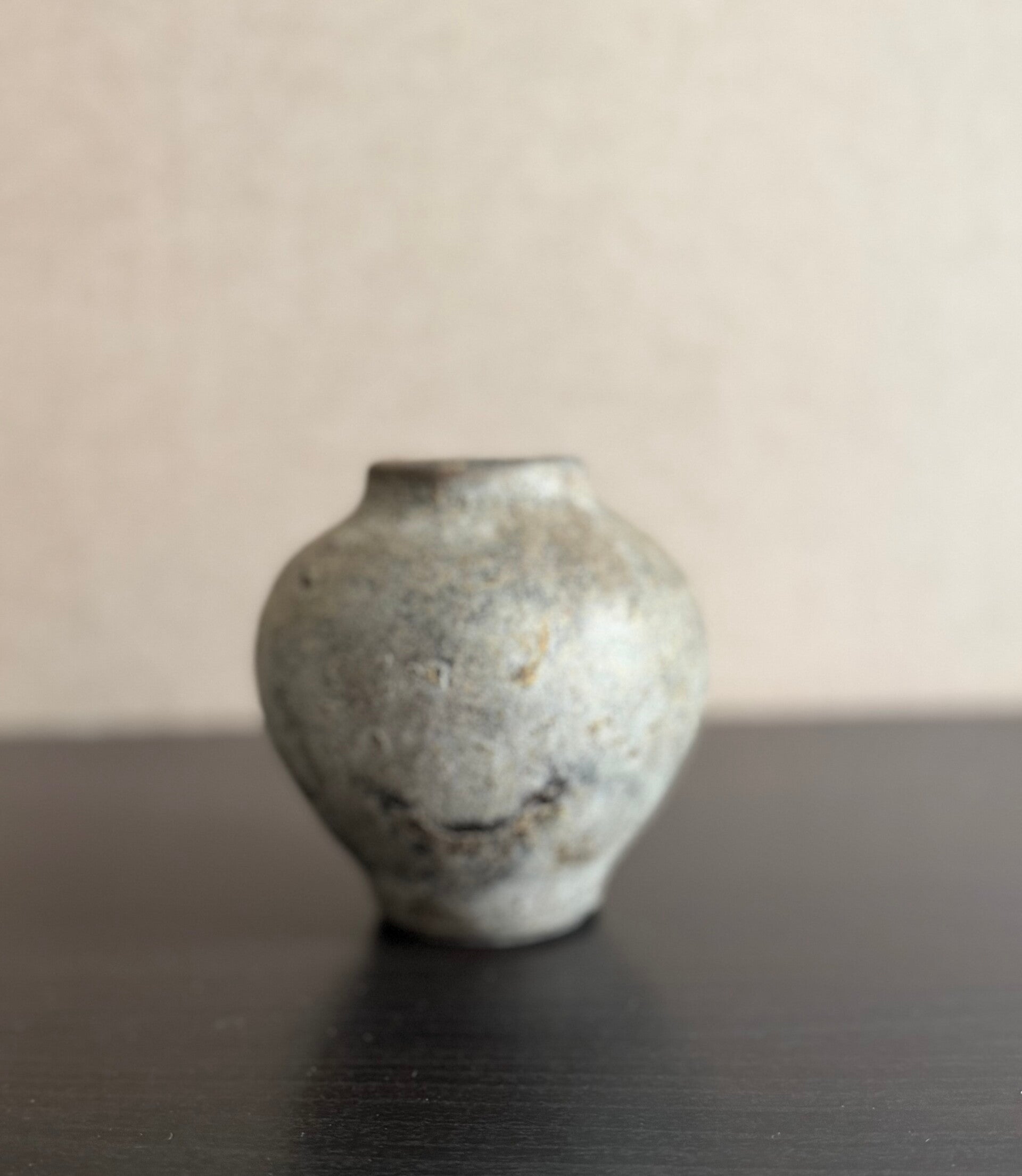 Stoer stenen potje met een natuurlijke en robuuste uitstraling. Door de subtiele kleurnuances en verweerde look krijgt dit potje een karaktervolle uitstraling die mooi past bij verschillende woonstijlen. Perfect als klein decoratief item op een plank, tafel of dienblad, eventueel met een paar takjes of droogbloemen.