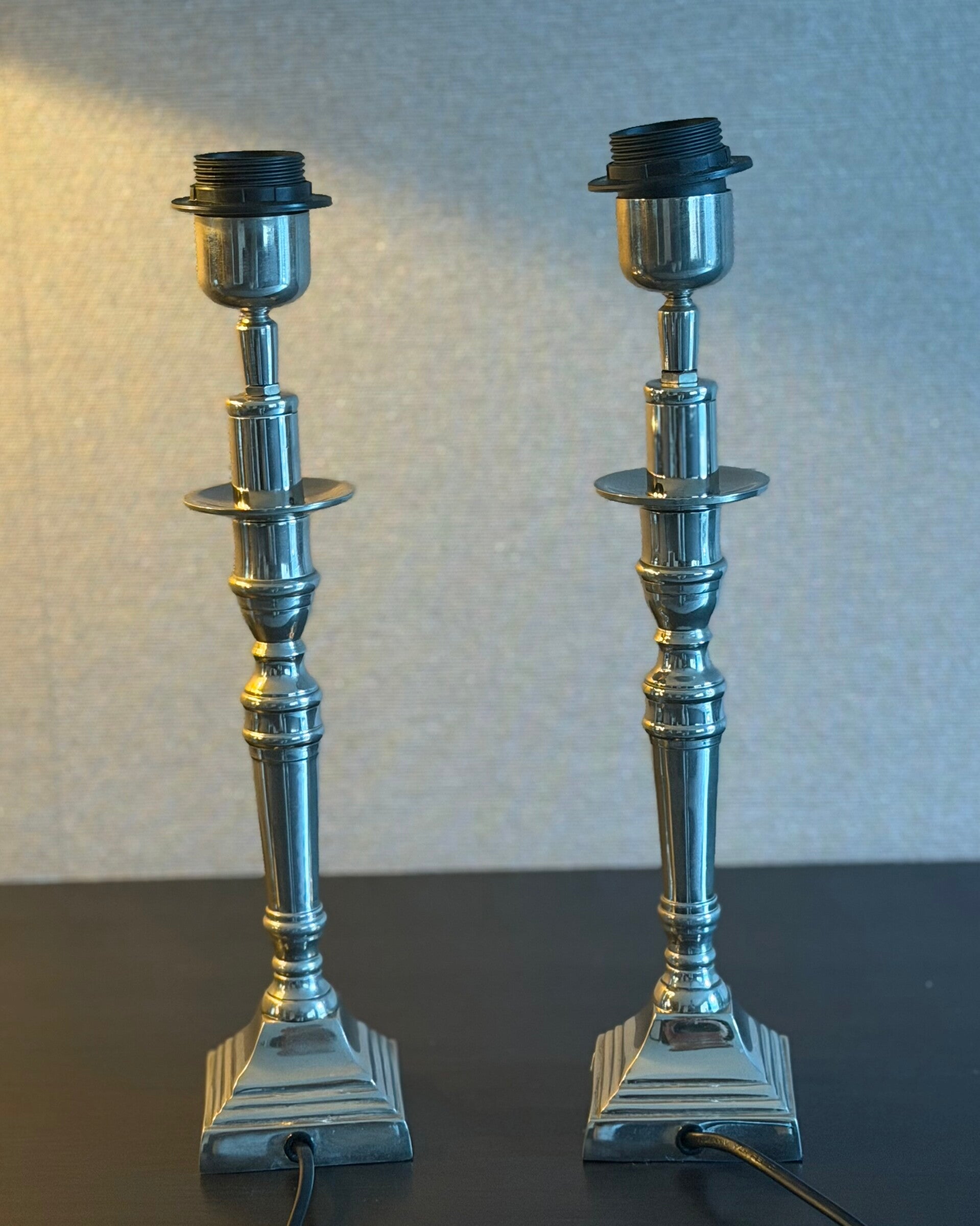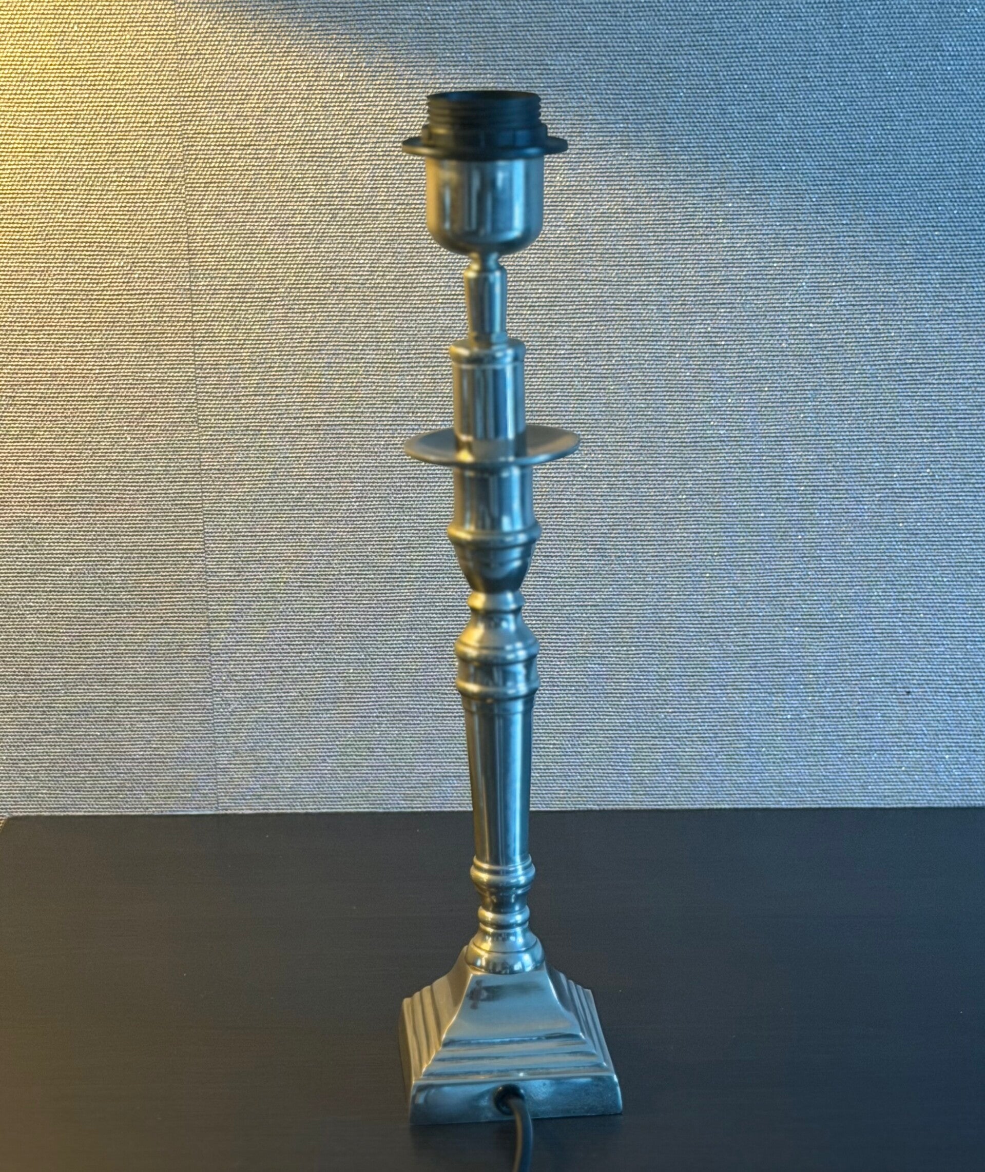 Elegante lampvoet in zilverkleur met een slank en klassiek ontwerp. Mooi voor op een dressoir, bijzettafel of nachtkastje. Door de tijdloze vorm past deze lampvoet bij veel verschillende lampenkappen en interieurstijlen.