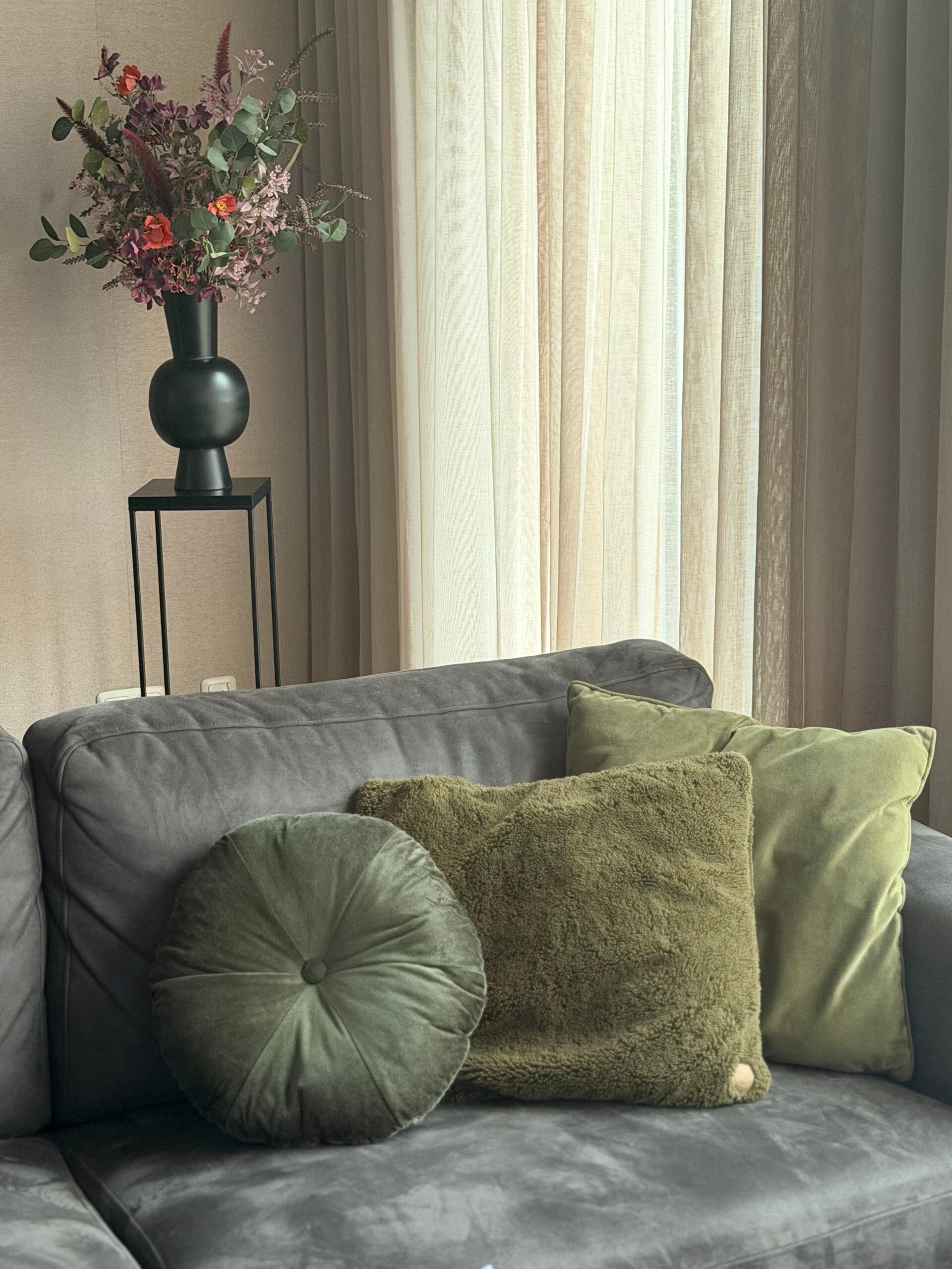 Groen sierkussen met zachte structuur. Mooi voor op de bank, stoel of bed en makkelijk te combineren met verschillende woonstijlen.