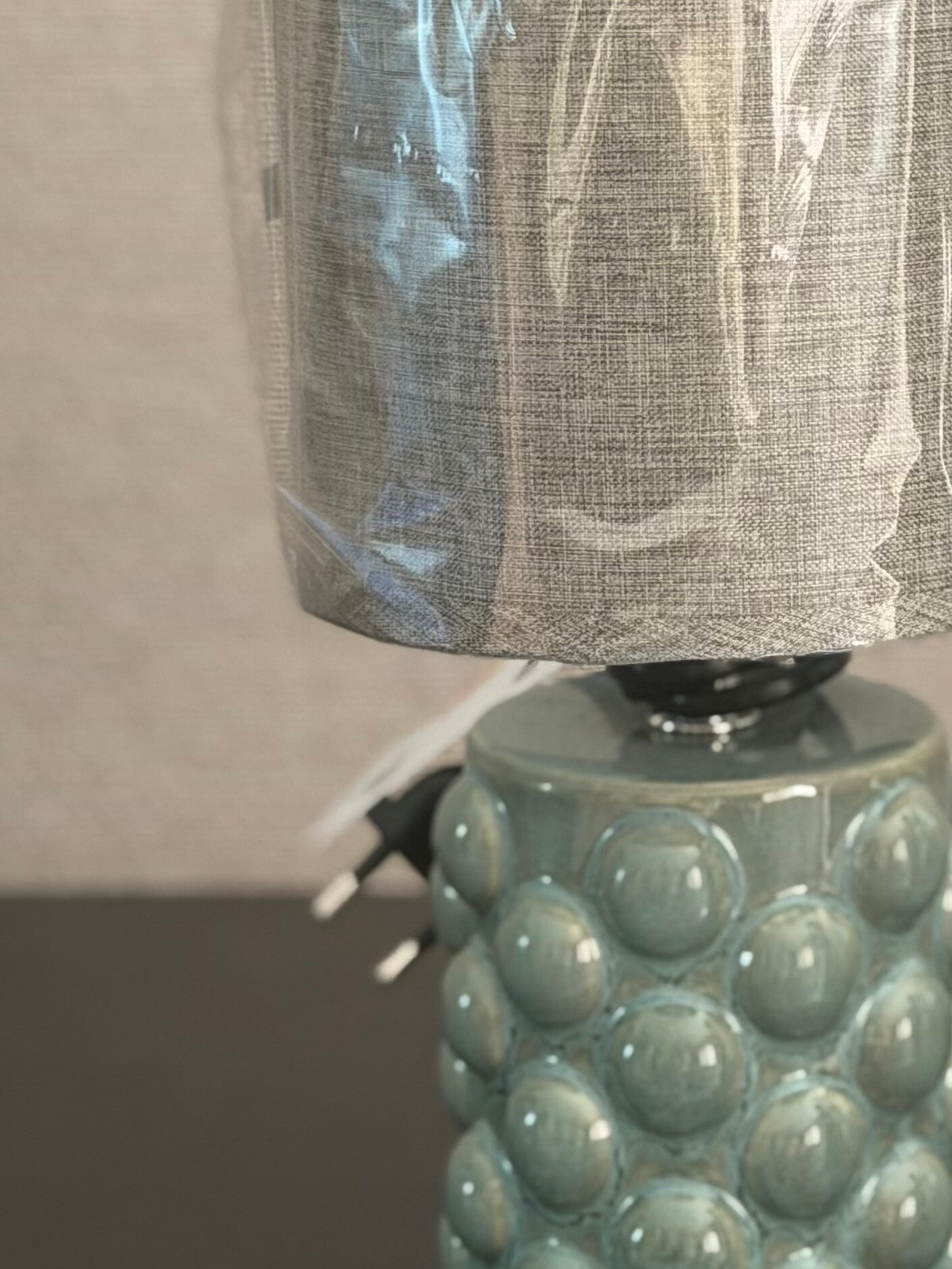 Breng sfeer en karakter in je interieur met deze unieke LETI tafellamp. De lamp heeft een groene keramieken voet met een speels bolletjespatroon, wat zorgt voor een opvallend maar warm geheel. De bijpassende kap in een zachte, neutrale tint maakt de lamp helemaal af en zorgt voor een mooie, rustige uitstraling.