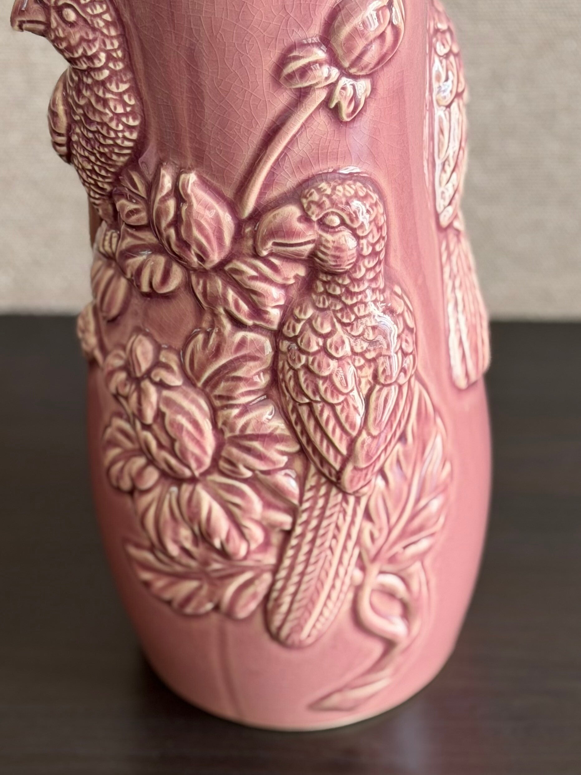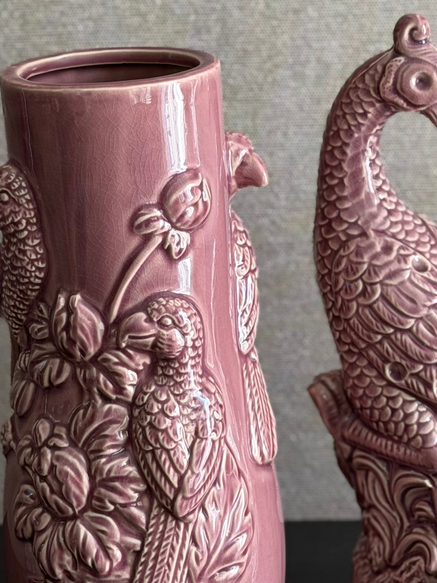 Deze decoratieve vaas is een echte eyecatcher in je interieur. De sierlijke details met vogels en bloemen geven de vaas een luxe uitstraling en maken hem perfect voor op een dressoir, bijzettafel of in een open kast.