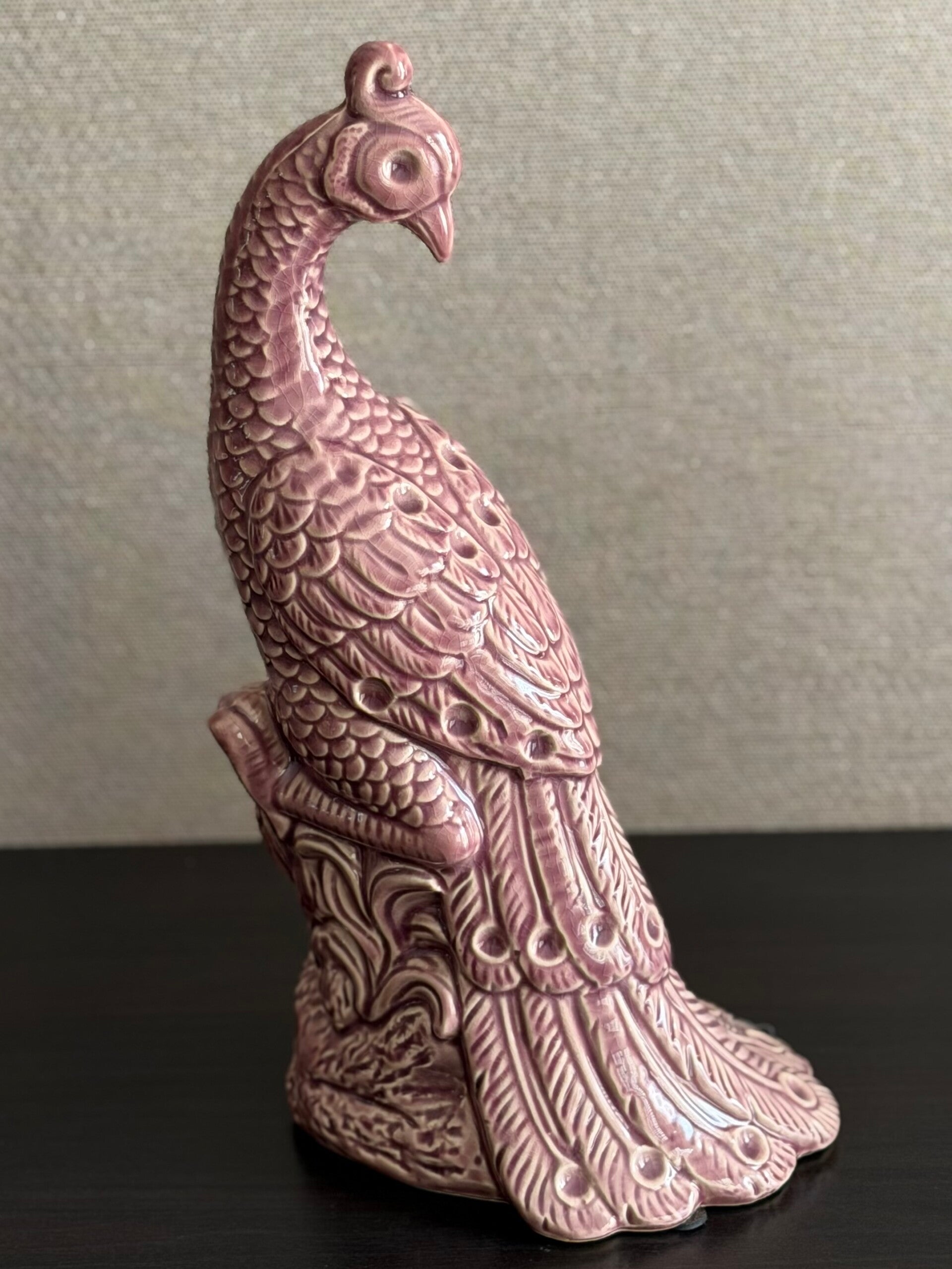 Dit sierlijke pauw beeld is een echte eyecatcher in je interieur. De verfijnde details en het elegante design geven dit decoratieve beeld een luxe uitstraling, perfect voor op een dressoir, bijzettafel of in een open kast.