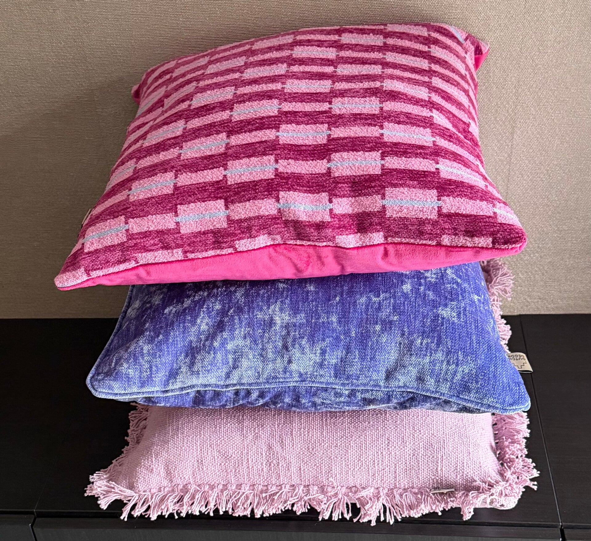 Dutch Decor sierkussen Arabel 45x45 – roze geblokt